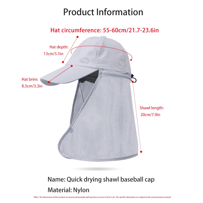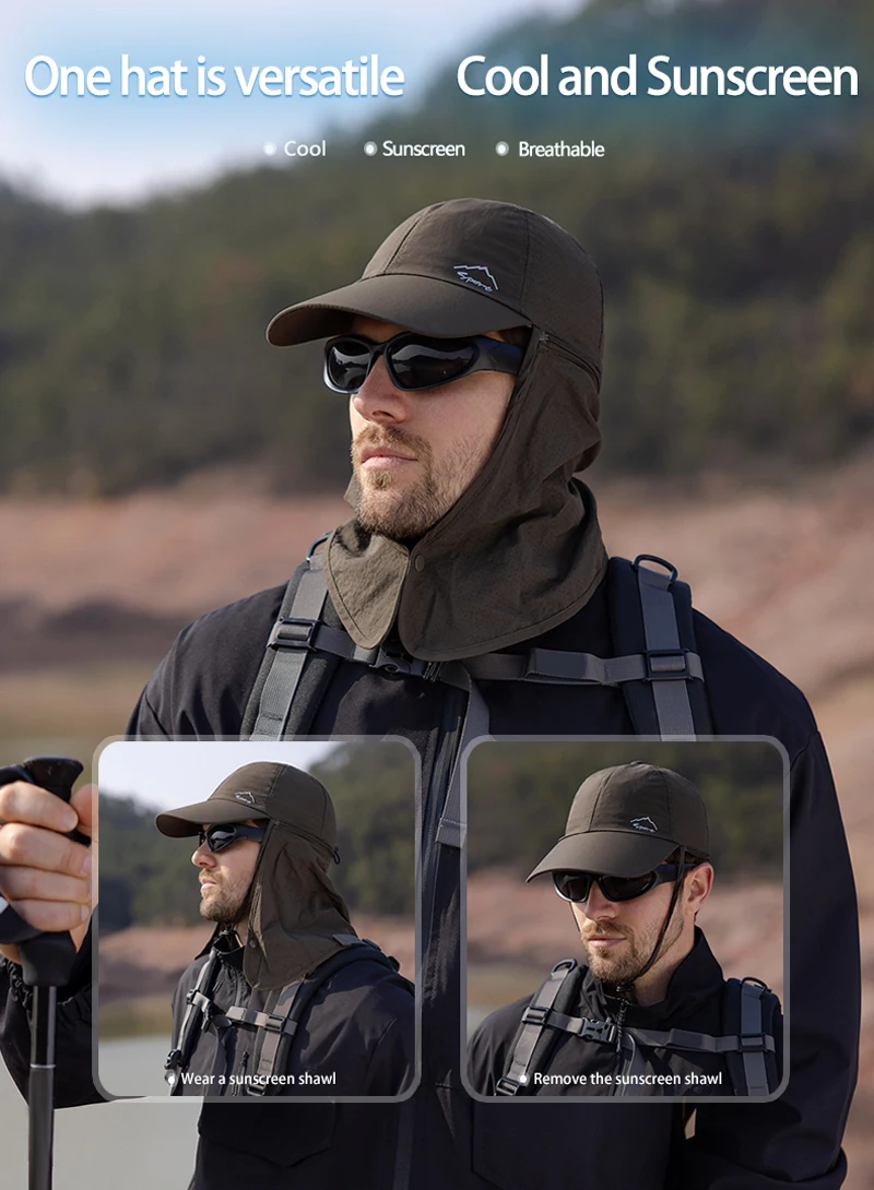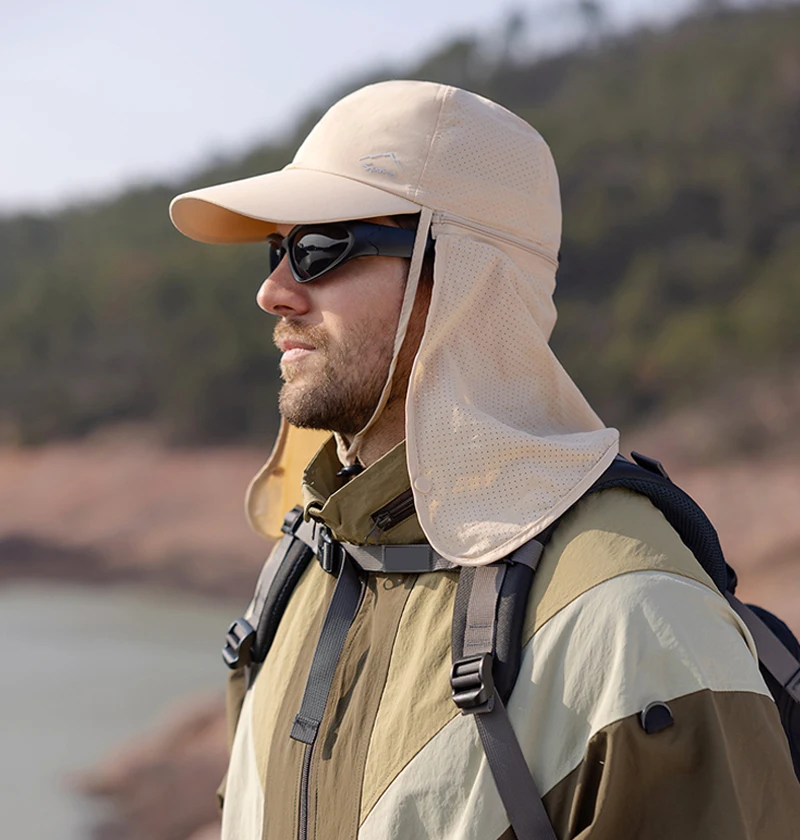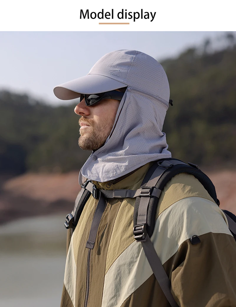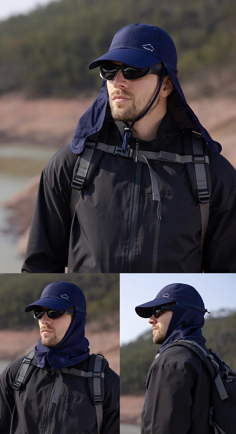 Xinbaoguan 100% Polyester 9237 Summer Sun Protection Hat for Men and Women Quick Drying Fisherman Hat with Shawl Baseball Cap