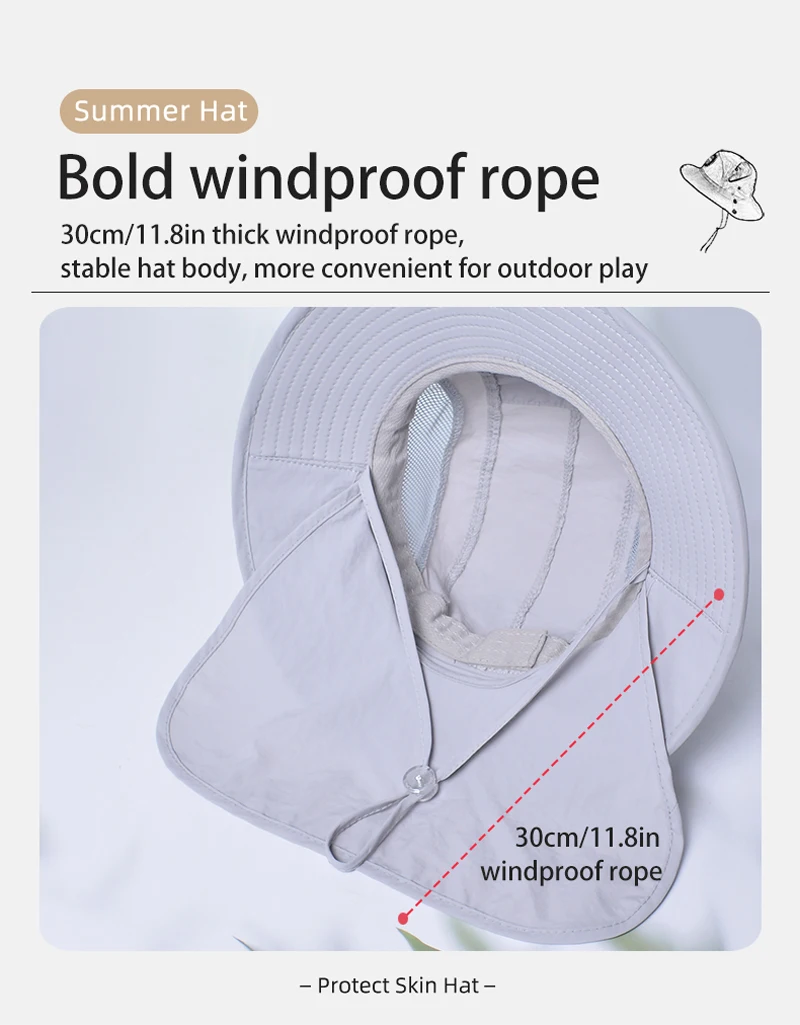 Xinbaoguan 100% Polyester Spring/Summer Outdoor Sunscreen for Boys and Girls, Big brim Shawl, Neck Protection Fisherman's Hat