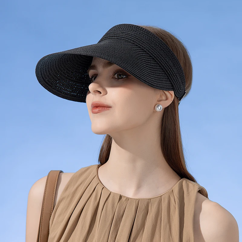 Xinbaoguan 100% Straw Knitted8222Summer Women's New Sunscreen Hat with Large Eaves and Hair Hoops Straw Hat Fashion Open Top Hat